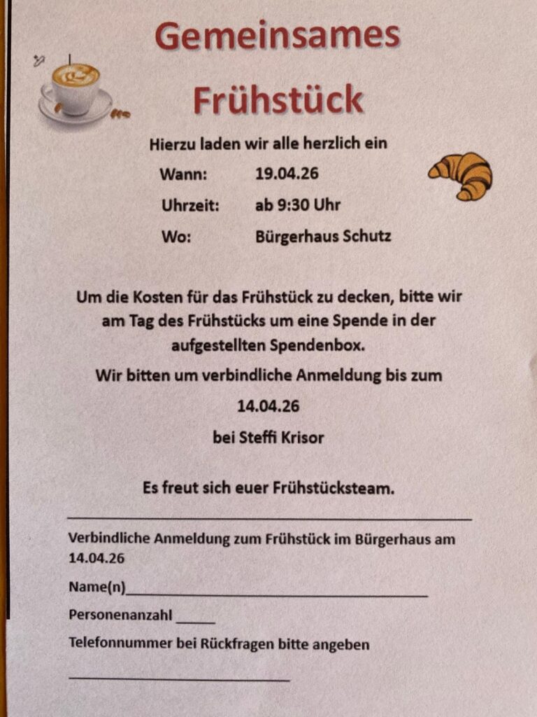 Herzliche Einladung zum gemeinsamen Frühstück: